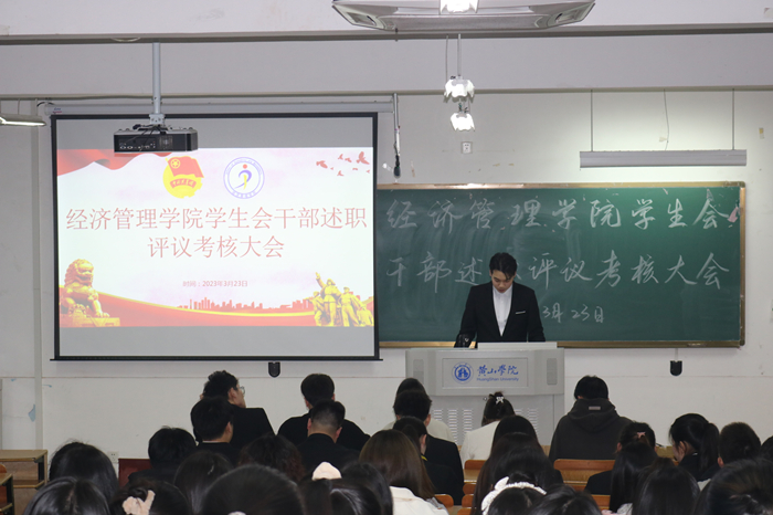3月23日晚,6776永利集团学生会于横江校区1101教室开展学生干部工作述职评议大会,团委副书记李斌、主席团成员和学生会成员出席本次例会。会议由主席团成员宋刚主持。