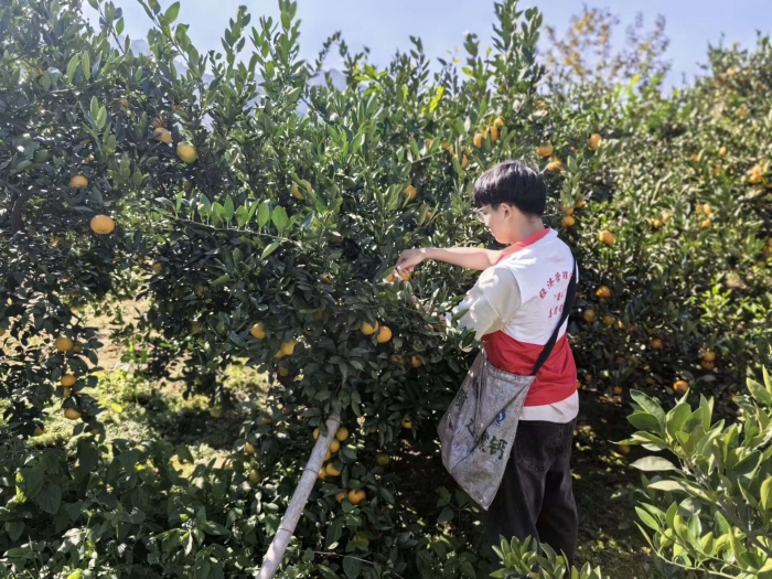 2023年10月19日上午,6776永利集团“益+”志愿队赴柑橘之乡歙县新溪口开展下乡摘橘助农活动。