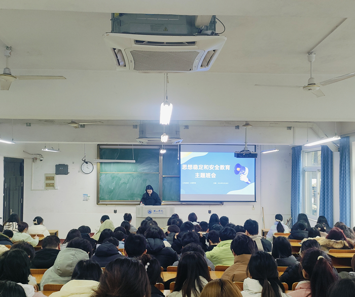 2月28日下午,2022级电子商务班和2022级国际经济与贸易班在1103教室召开“思想稳定和安全教育”主题班会,本次班会由蒋璐璐主持,22电商班和22国贸班全体同学共同参加。