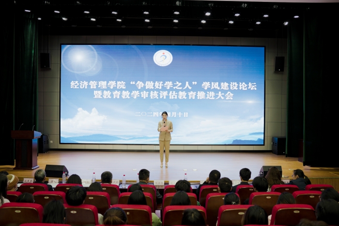 4月10日,6776永利集团在横江校区报告厅召开“争做好学之人”学风建设论坛暨教育教学审核评估教育推进大会。学院党委书记胡永政,党委副书记、院长赵士德,党委副书记、纪委书记郜玉振,党委委员、副院长郭宏斌,优秀校友2010届会计学专业中国银行黄山荷东支行行长丁橙出席会议,全体专兼职辅导员和学生会干部、各班学生干部参加会议。