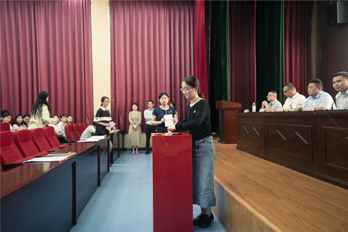 大会严格按照选举程序,全体参会正式党员认真填写选票,以无记名投票、差额选举方式,选举产生了8名师生党员代表,其中学生党员代表1名出席学校第四次党代会。