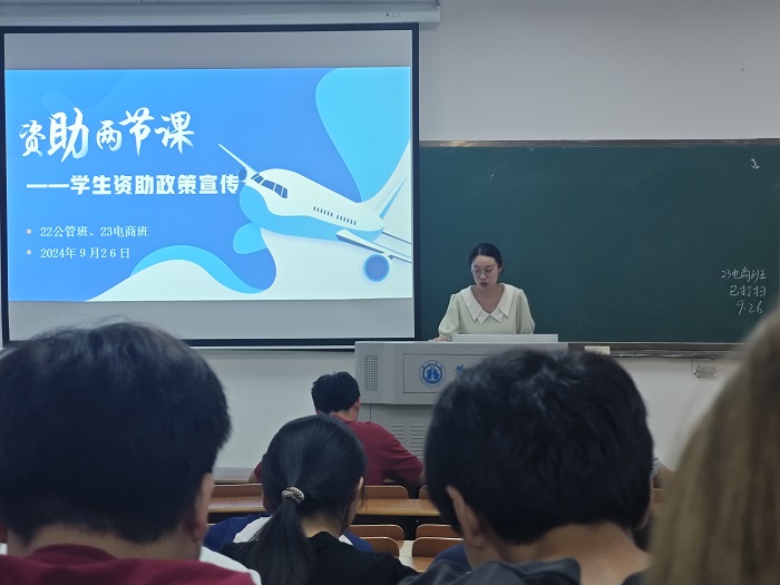 9月26日,21国贸班、21财管班、21会计班、22公管班、23电商班先后在横江校区1102、1101、1324教室开展“资助两节课”——学生资助政策宣传活动,活动由辅导员汪夏萍主持,各班级全体同学共同参加。