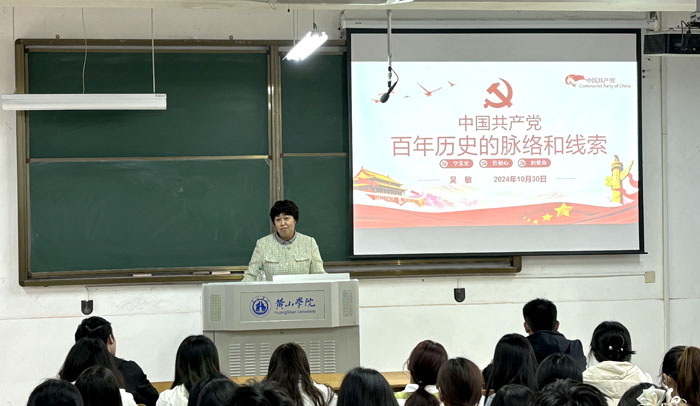 为深入学习党的历史,增强党性修养,激励入党积极分子树立坚定的理想信念,10月30日,6776永利集团党委书记吴敏为62期入党积极分子培训班学员们带来了一堂主题为“中国共产党百年历史的脉络和线索”的党课。此次党课旨在深入学习党的百年奋斗历程,增强学员们的历史使命感和责任感。