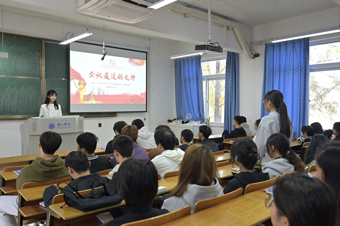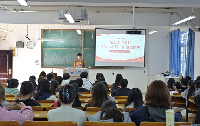 10月23日,团支部开展了“学习贯彻党的二十届三中全会精神”宣讲活动。王申结合自身学习体会,用通俗易懂的语言、生动鲜活的案例,深入浅出地介绍了党的二十届三中全会的重大意义、主要内容和精神实质,同学们对党的二十届三中全会精神有了更加深刻的理解和把握,鼓励同学们以积极的态度践行党的二十届三中全会精神,以理论指导实践,坚定理想信念,练就过硬本领,积极投身用实际行动践行青春誓言。