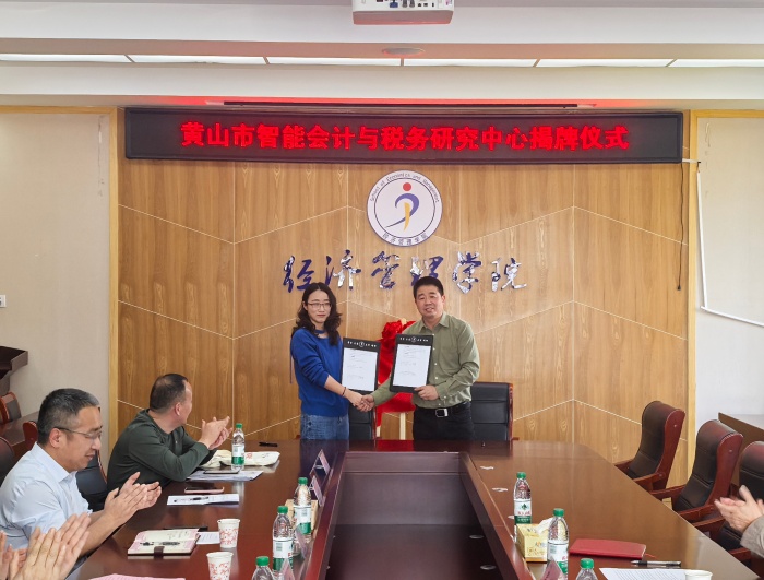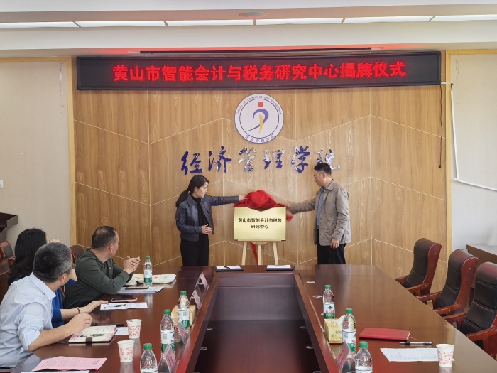 为深化校地协同创新,服务地方经济高质量发展,3月24日下午,我校召开yl6776永利集团黄山市智能会计与税务研究中心成立大会。yl6776永利集团副院长姜红、国家税务总局黄山市税务局副局长吴波共同为黄山市智能会计与税务研究中心揭牌。