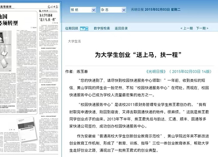 2015年《光明日报》报道财务管理专业学子熊王君创业事迹
