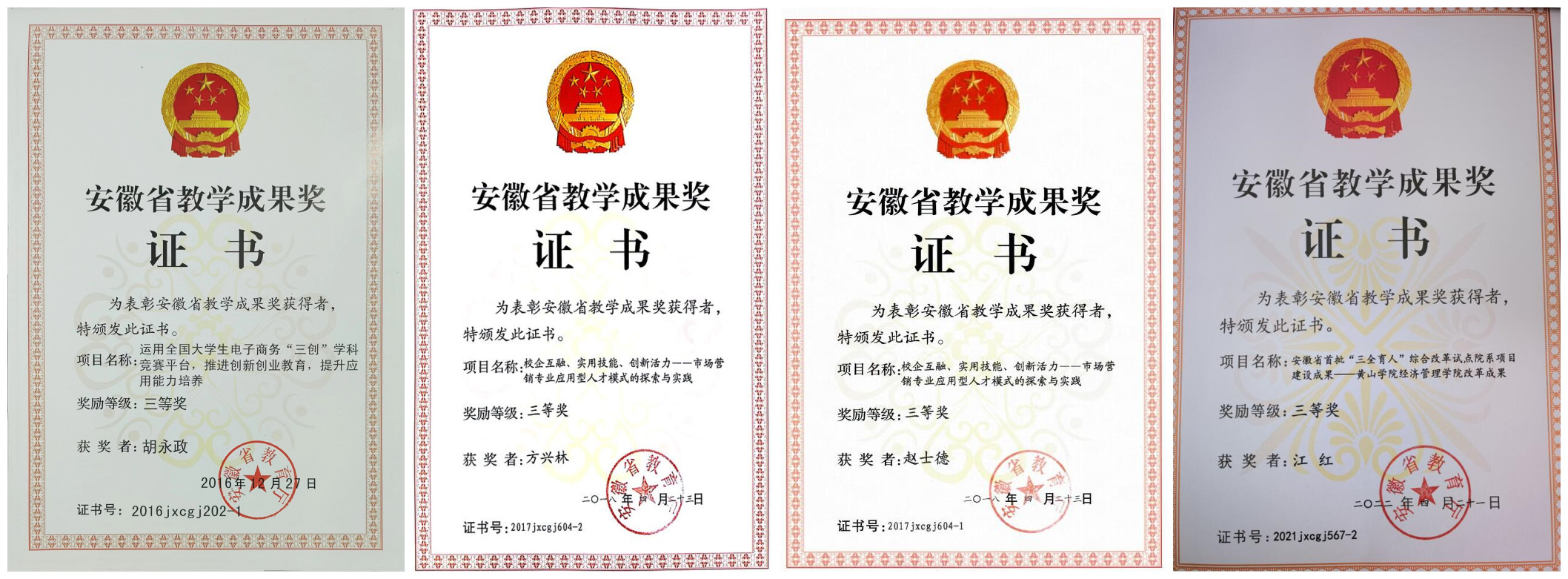 2016年学院获得省级教学成果三等奖
